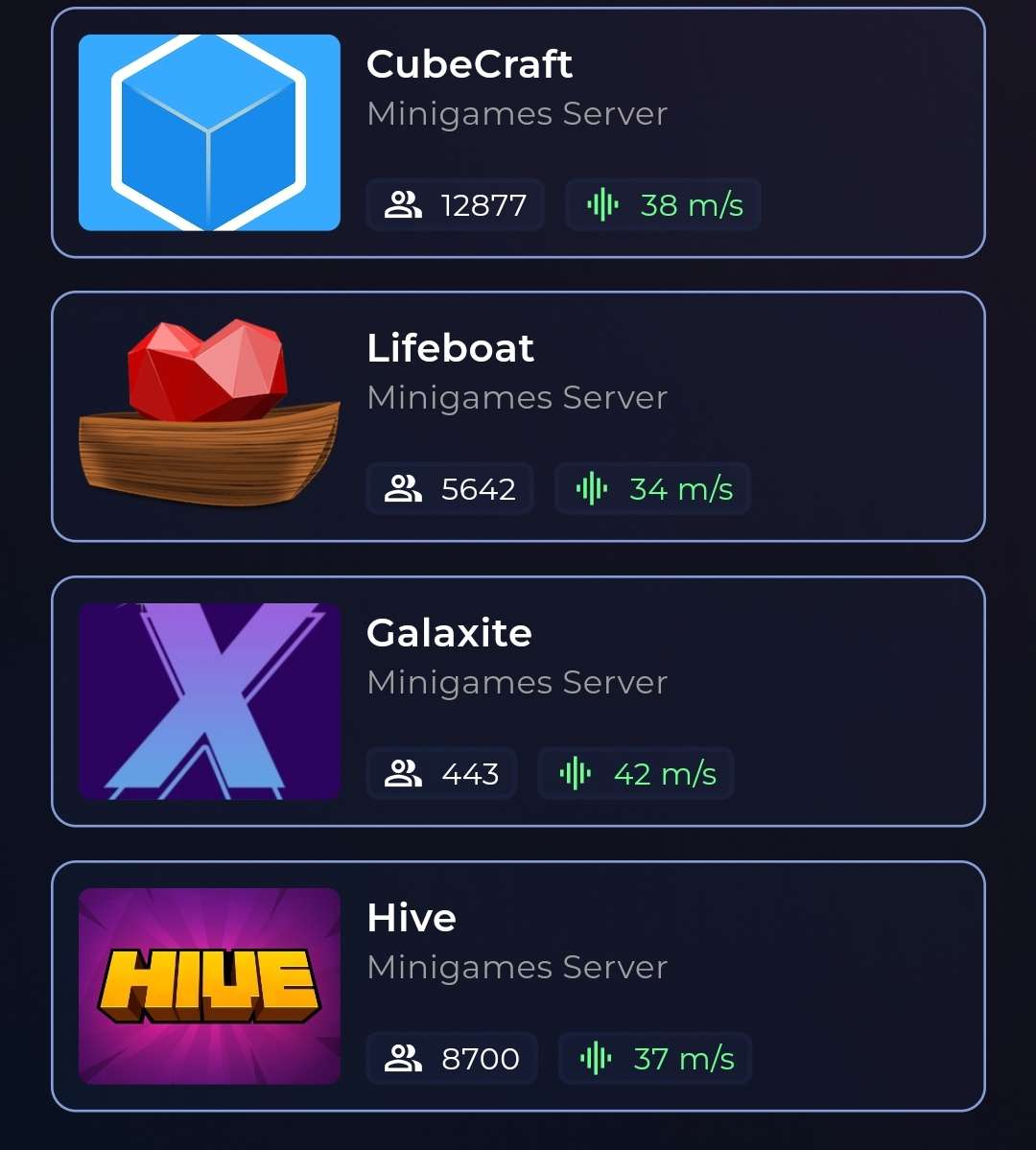 The m/s values indicate the server's ping time, with <mark style="color:green;">Green</mark> \[**0-80 m/s**] signaling perfect connection, <mark style="color:yellow;">Yellow</mark> \[**80-175 m/s**] as acceptable, and <mark style="color:red;">Red</mark> \[**175+ m/s**] denoting poor connection.